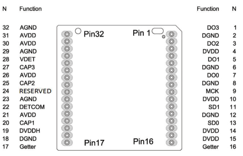 Pin distribution of CED384/CED640 detector is shown in Figure: