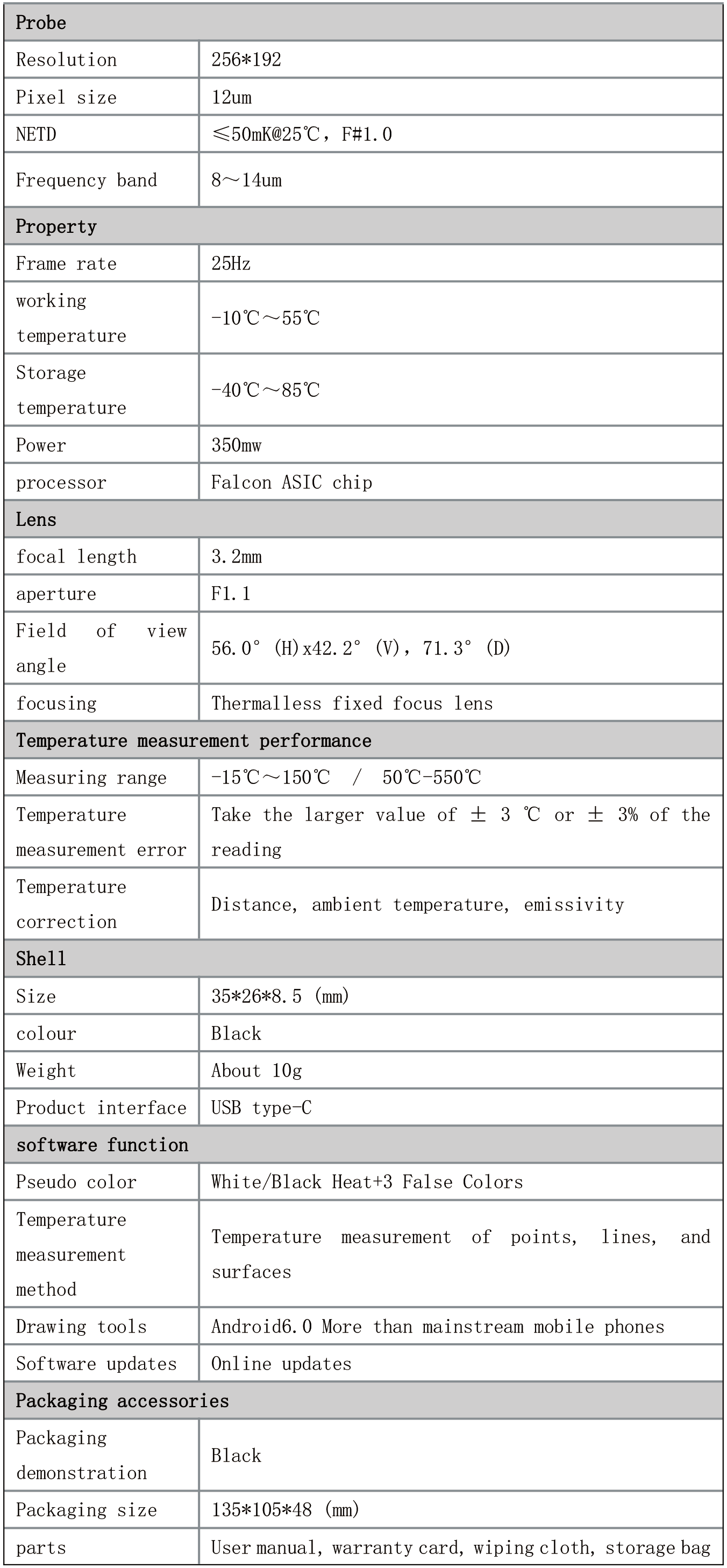● 256x192, 12μm Vanadium Oxide Uncooled Sensor;